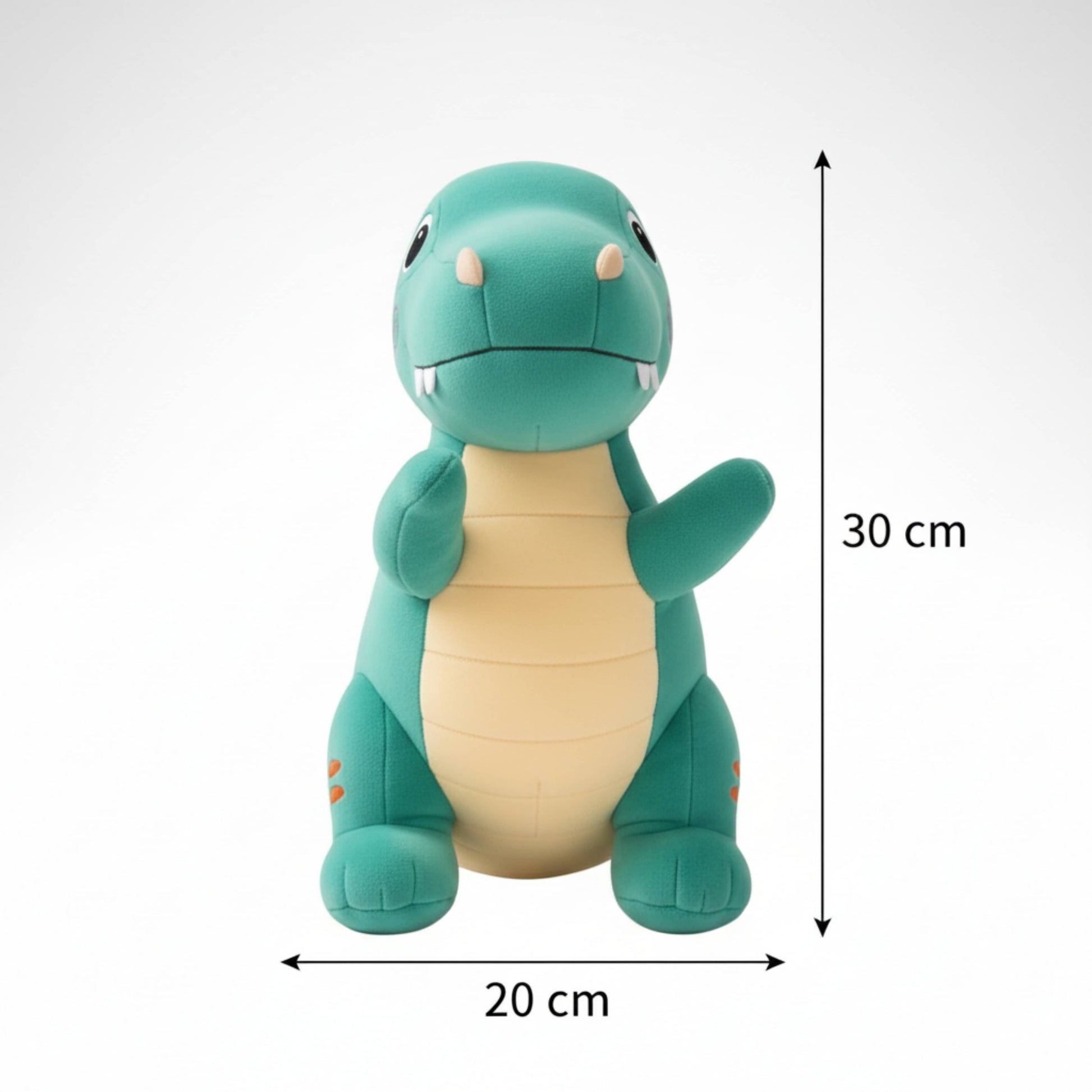 Meet the gentlest giant in the Jurassic period! This adorable T-Rex Plush is designed with a friendly, non-intimidating look, making it the perfect cuddle buddy for your little one. With its vibrant green body, soft beige belly, and fun, tiny orange stripe details, this dinosaur is ready for prehistoric adventures and cozy bedtime snuggles.