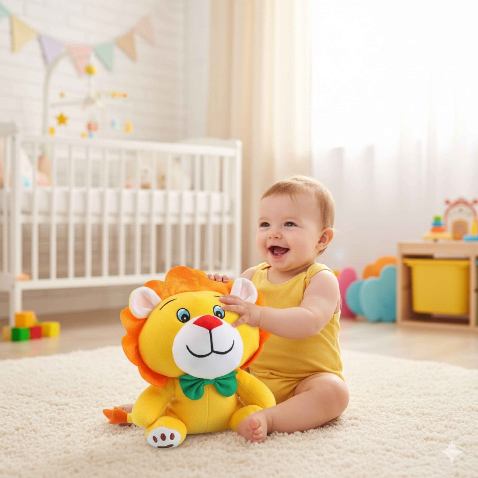 Give your child the King of the Jungle who is 100% cuddle and 0% scary! This adorable Yellow Lion Plush is bursting with personality, featuring a bright orange mane, kind blue eyes, a bright red nose, and a smart green bow tie. He's designed to be a soft, colorful, and comforting companion for every adventure.